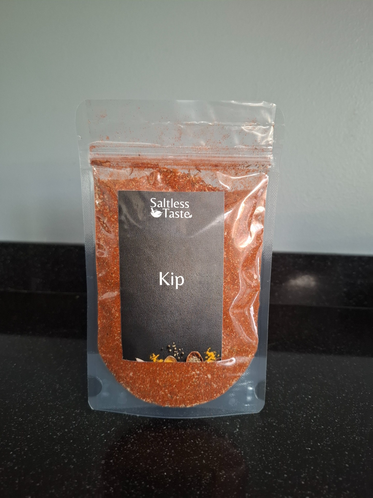 Breng je kip op smaak met deze kruidenmix bestaande uit paprikapoeder, knoflookpoeder, uiengranulaat, basilicum, chilipoeder, tijm, zwarte peper en koriander.